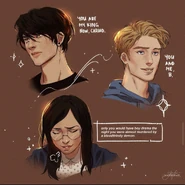 After his mother was taken away, Nick was Oathed to Selwyn Kane when the two were nine and ten years old respectively. The two did not get along. Nick thought Sel was cruel, and Sel thought Nick was entitled. Due to their bond, they took on the other's emotions as if they were his own, that was the first time they understood each other.[1] Not long after Sel showed up, Nick began to see his father’s praise and attention as a zero-sum game. And since Sel was obedient, he received those things. As children they manipulate Lord Davis' regard, pulling rank and title to suit their whims. And that's outside of the sparring arena. Within it, they gave each other their share of bruises and black eyes and even broken bones. They both learned how to exploit their bond by finding the loopholes.[2]